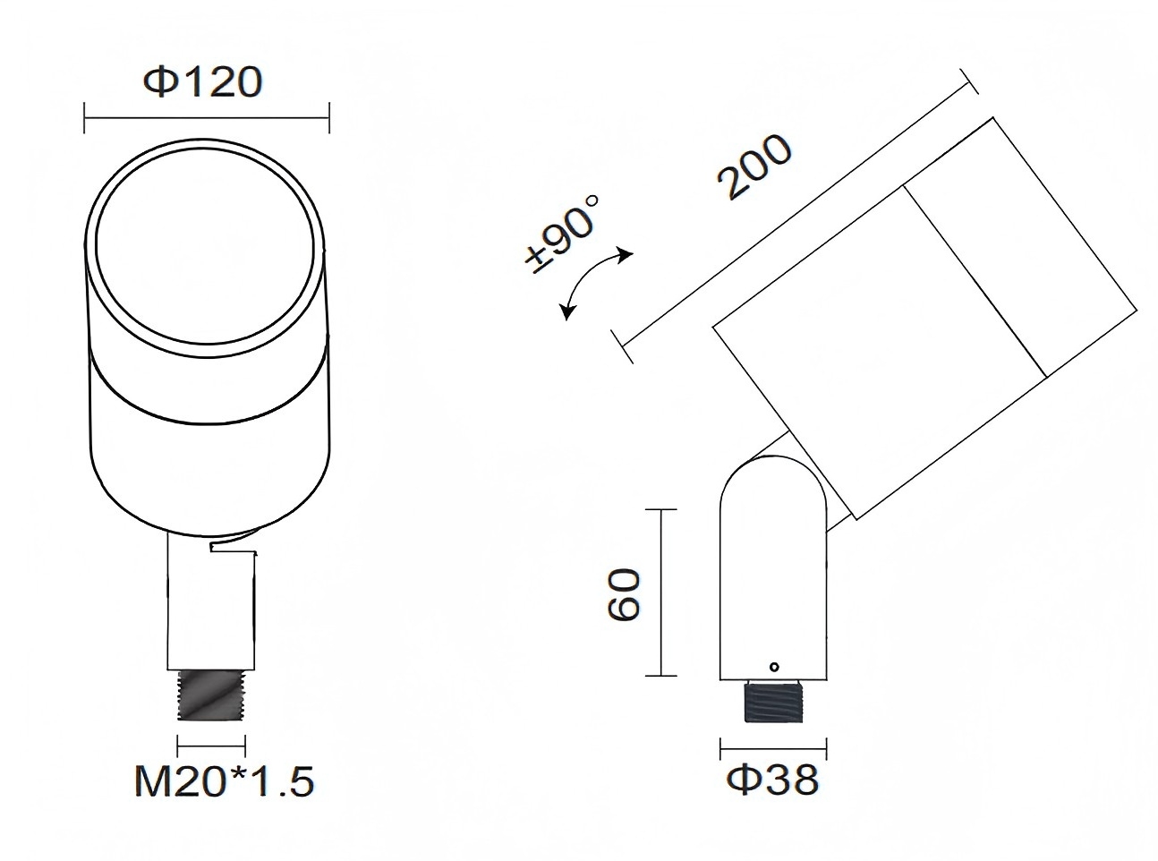 Vertically ± 90 ° adjust and horizontally 360 ° rotate.