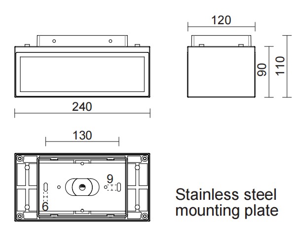 Stainless steel external screws and mounting plate.